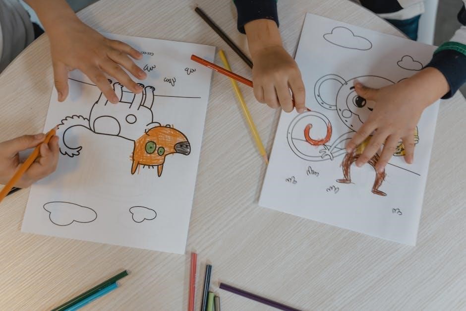 PDFs offer universal compatibility, ensuring easy access across devices. Most coloring books are designed for standard US letter (8.5 x 11 inches) or A4 paper sizes, simplifying printing. However, always preview the PDF before printing to confirm the page orientation and layout.